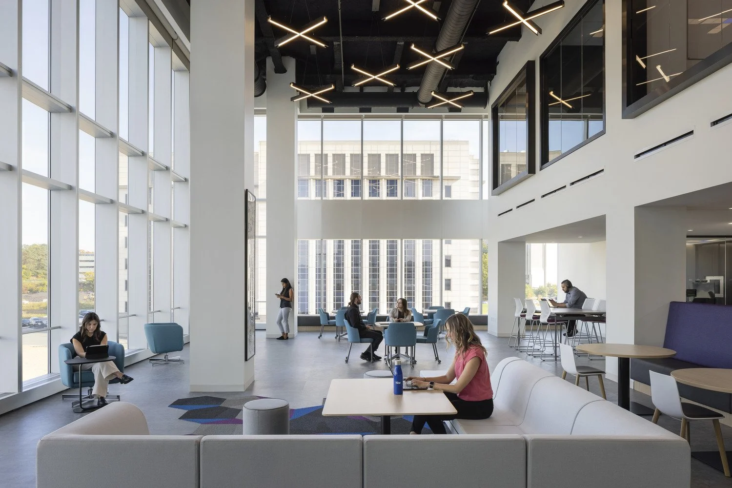 Typography on the signs blends code-compliant sans serif with Eisai’s branded serif font, maintaining brand consistency. Dimensional lettering for specific destinations within the office combines a sense of weightiness and subtlety, aligning with the brand without overpowering the space. Brandx also created a unique library of icons and illustrations for the office, and Eisai's brand mark was intricately integrated into the glass film banding. This meticulous approach results in a signage system that is both visually striking and in sync with Eisai's architectural aesthetics and brand values.